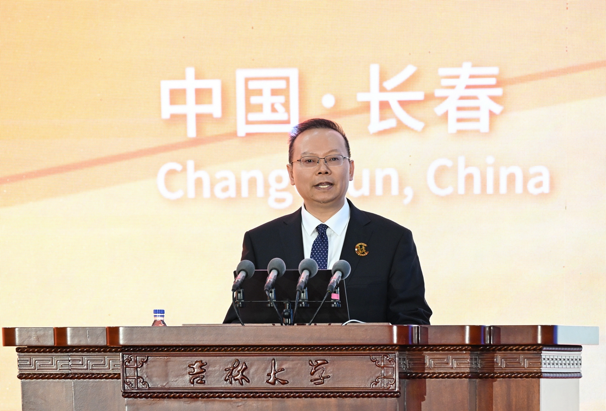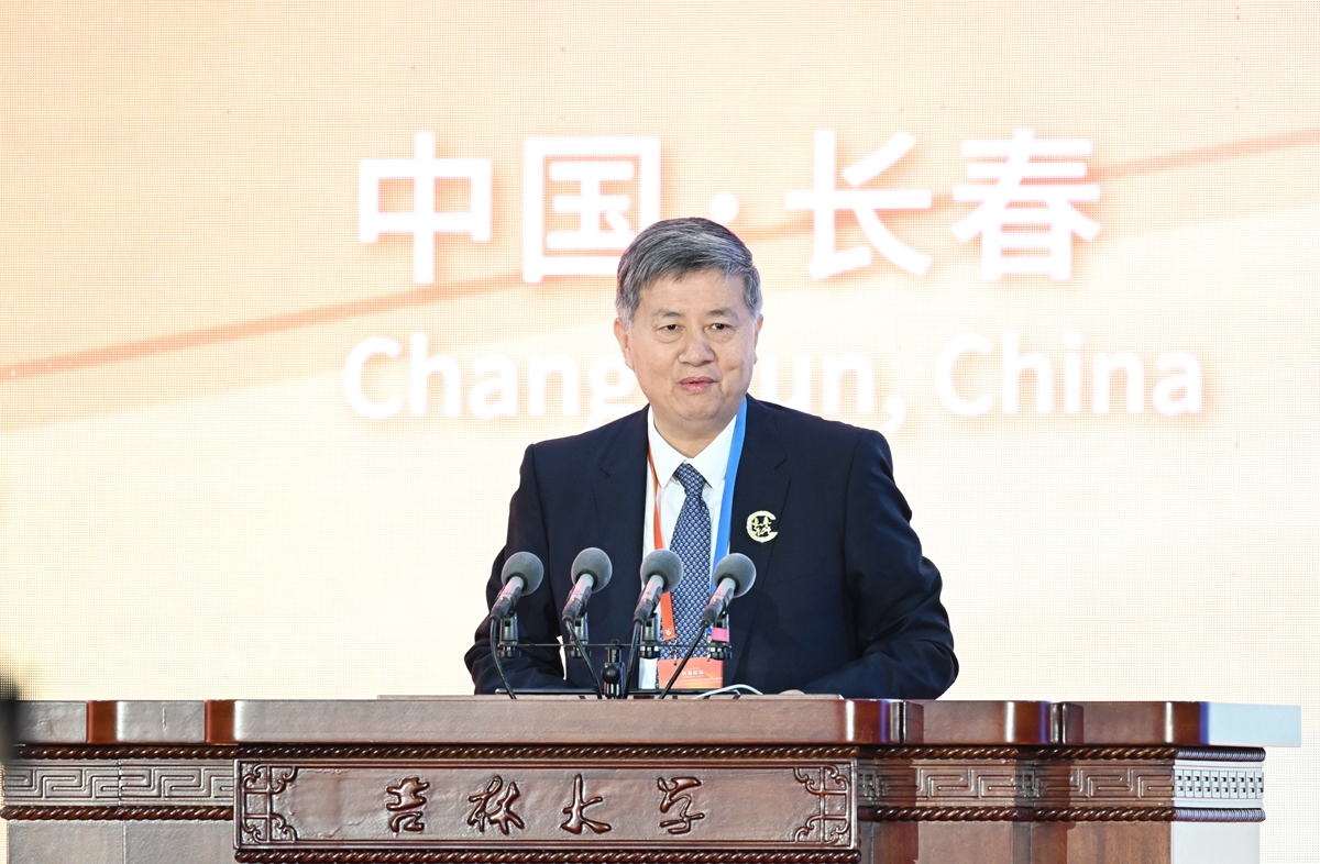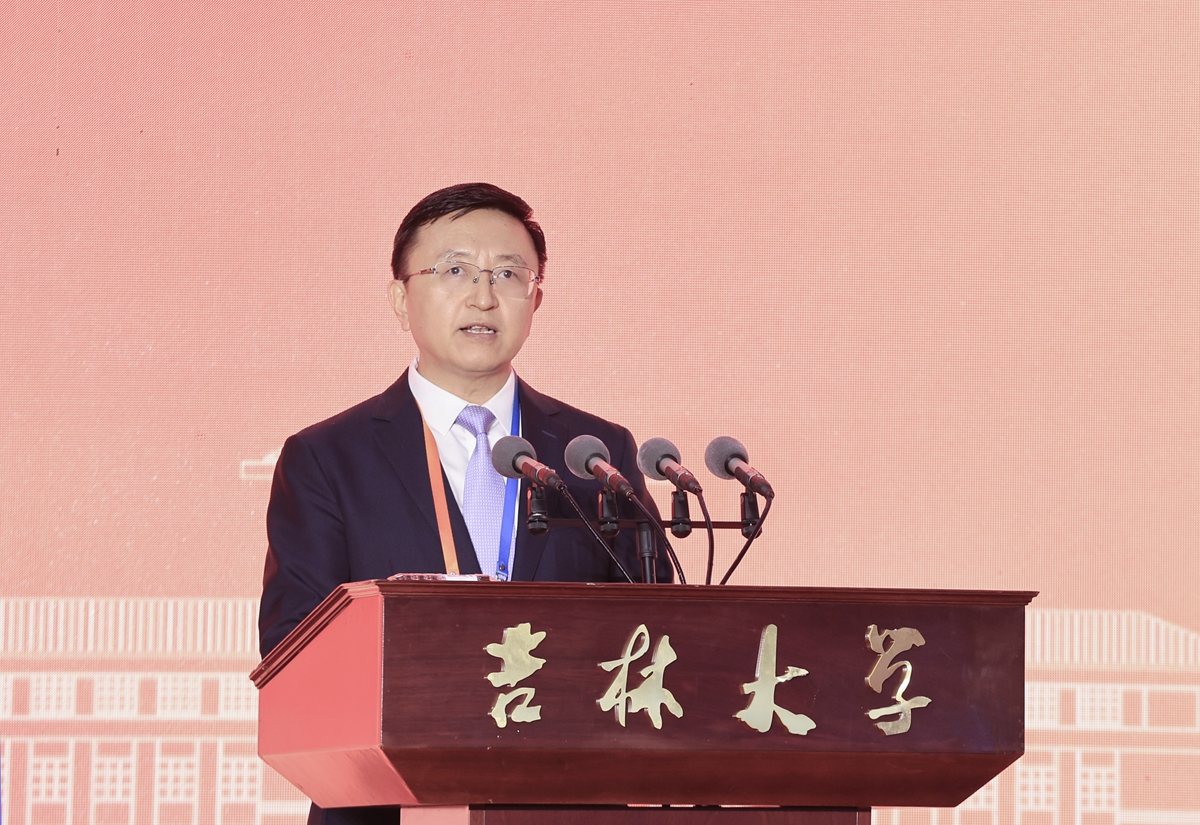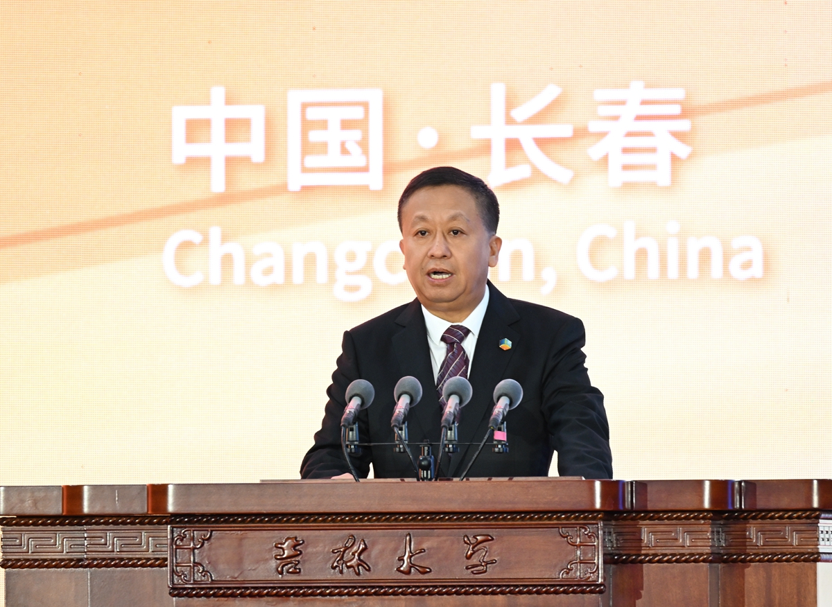 田辉在致辞中表示,发起举办“长春论坛”,旨在深入贯彻落实习近平总书记关于建设教育强国和推动东北全面振兴的重要指示精神,汇聚高校、企业以及长春的智慧与力量,推动校校携手、校企合作、校地融合,实现教育、科技、人才、产业深度协同,为教育强国建设和东北全面振兴注入新动能。希望通过“长春论坛”,进一步增进感情,释放学缘优势、情缘优势,着力校校融共、科教融汇、产教融合、文教融铸、校地融接、中外融通,让大学之智、企业之力与长春之需深度对接融合,打造校企地发展共同体,为长春高质量发展提供有力支撑。吉林大学将坚持立足长春、扎根吉林、面向全国、放眼世界,努力将“长春论坛”打造成为助力一流大学建设、助力一流企业发展、助力长春振兴突破的响亮品牌。