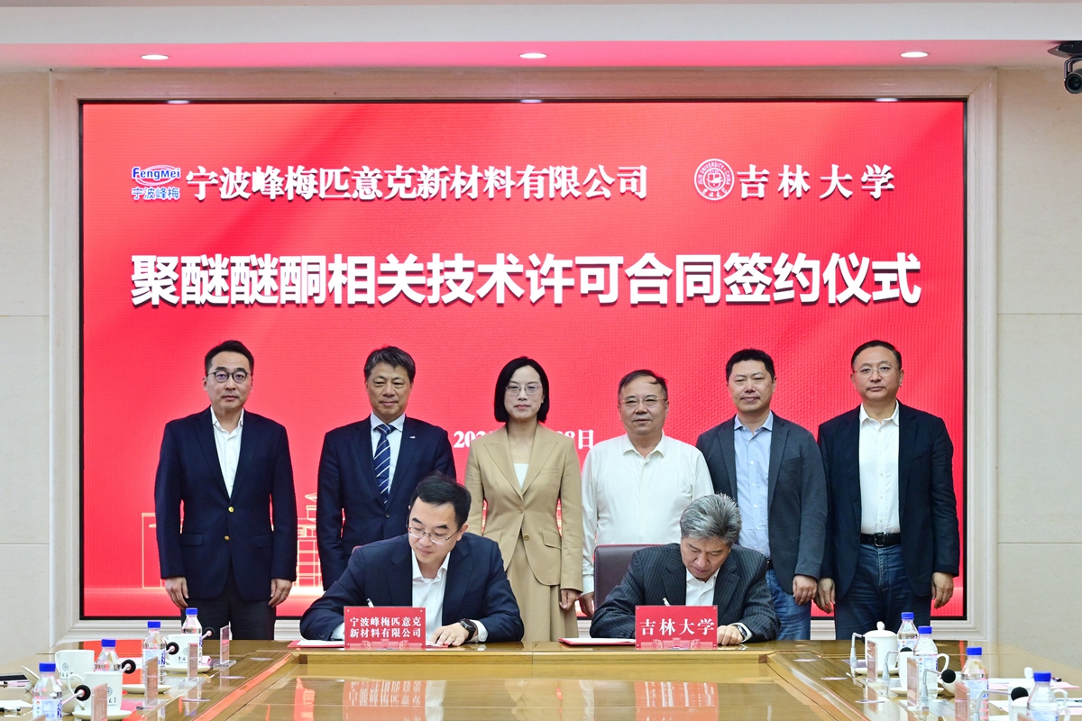 9月28日,吉林大学聚醚醚酮(PEEK)相关技术许可合同签约仪式在中心校区举行。本次签约,吉林大学三项核心专利以普通许可的方式许可给宁波峰梅匹意克新材料有限公司使用,协议价格3000万元,未来将和该公司共同推进聚醚醚酮(PEEK)相关技术产业化。吉林大学党委副书记韩喜平出席签约仪式。签约仪式由国内合作处处长刘岩峰主持。